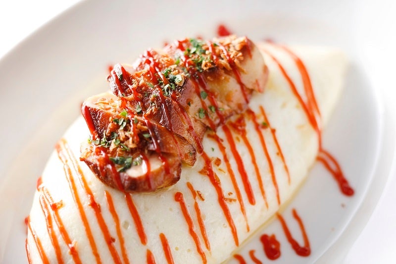 洋食の定番とも言える「オムライス」に、高級食材「フォアグラ」を贅沢に添えた一皿。
