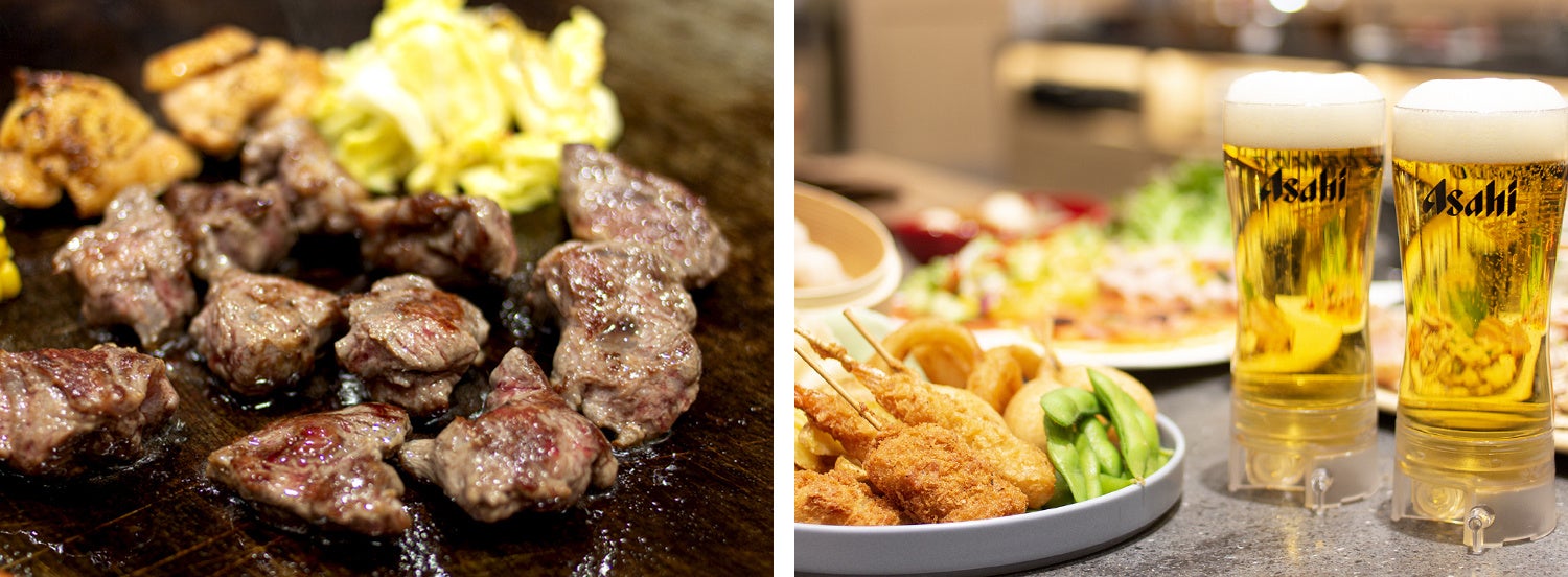 料理とドリンク合わせて約60種類が食べ放題・飲み放題で120分間お楽しみいただける当ビアホールでは、「博多もつ鍋」や「飲茶」「担々麺」などの定番メニューに加え、ビーフステーキやチキンなど出来立て熱々の料理が楽しめる鉄板焼きコーナーが登場いたします。ドリンクは、通常の生ビールや黒ビールに加えて、バラエティ豊かなメニューを飲み放題にてお楽しみいただけます。女性グループでのご予約では、乾杯用のスパークリングワインもプレゼント、女子会にもおすすめです。カジュアルな雰囲気のおしゃれなレストランで美味しいお酒とお料理を…、当ホテルの「週末ビアホール」を是非ご利用ください。