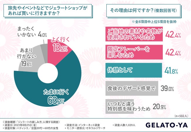 また、全国20代~60代の女性のおよそ8割が、旅先やイベントでもジェラートを食べると回答しました。