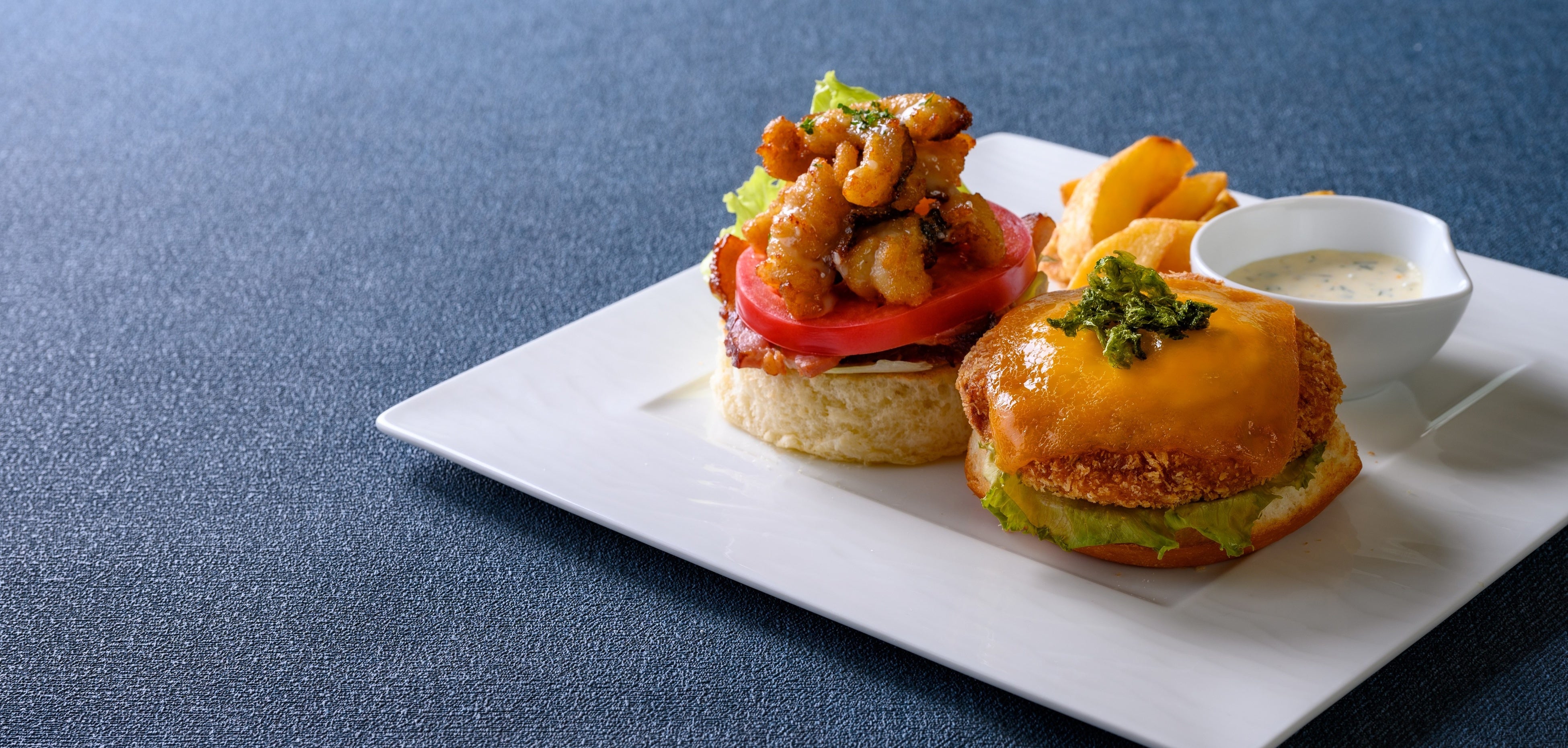 その「ウツボ」を2種の味わいでご堪能いただけるハンバーガーに仕上げました。