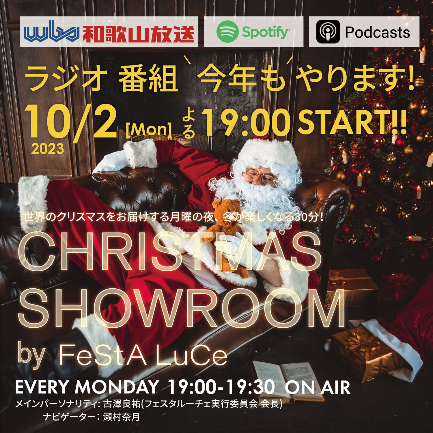 10月2日(月)からは昨年にひき続き、和歌山放送でラジオ番組「CHRISTMAS SHOWROOM by FeStA LuCe」が始まります。今年から番組放送直後からPodcastへの配信も行います。この時間にラジオが聞けない方や、和歌山県外の方でもお楽しみいただけます。