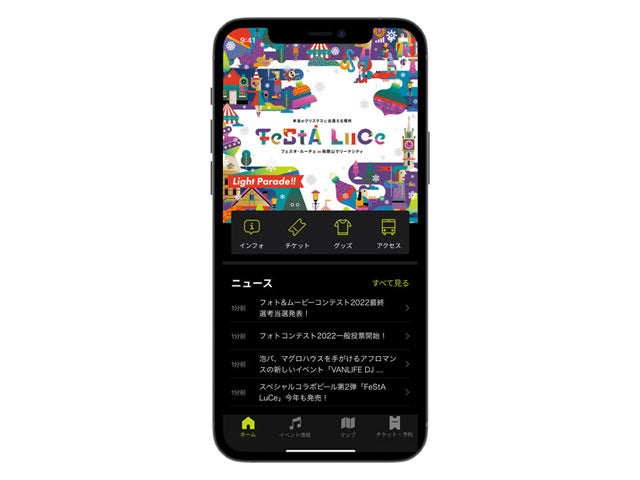 お得な前売りチケットの購入や、会場内で便利なイベント情報、会場マップなど、フェスタ・ルーチェを最大限に楽しむための情報が満載!
