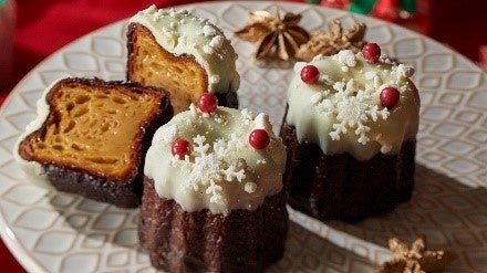 フォーシーズンズホテル東京大手町で、大切なロイヤルゲストのアメニティとして提供されていたカヌレを、フェスティブの装いに仕上げ期間限定で販売いたします。表面はカリッと、中はモチっとした独特の食感に、高級グァテマラ産のラム酒の芳醇な香りが口いっぱいに広がります。