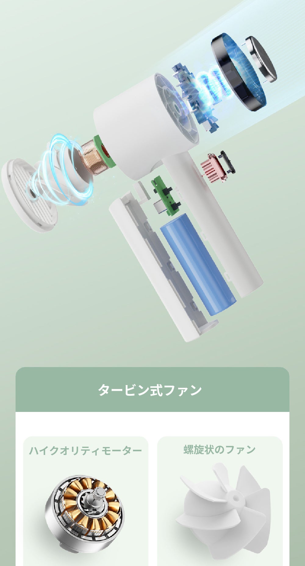 ● 飛行機タービン式ファンで、パワフルな風量