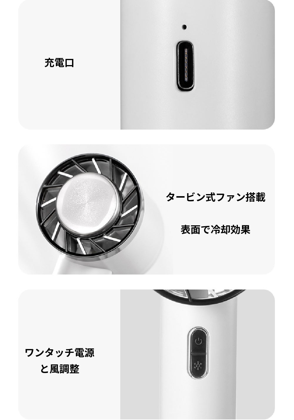 ● デスクトップ扇風機として設置可能、スマホホルダーとしても