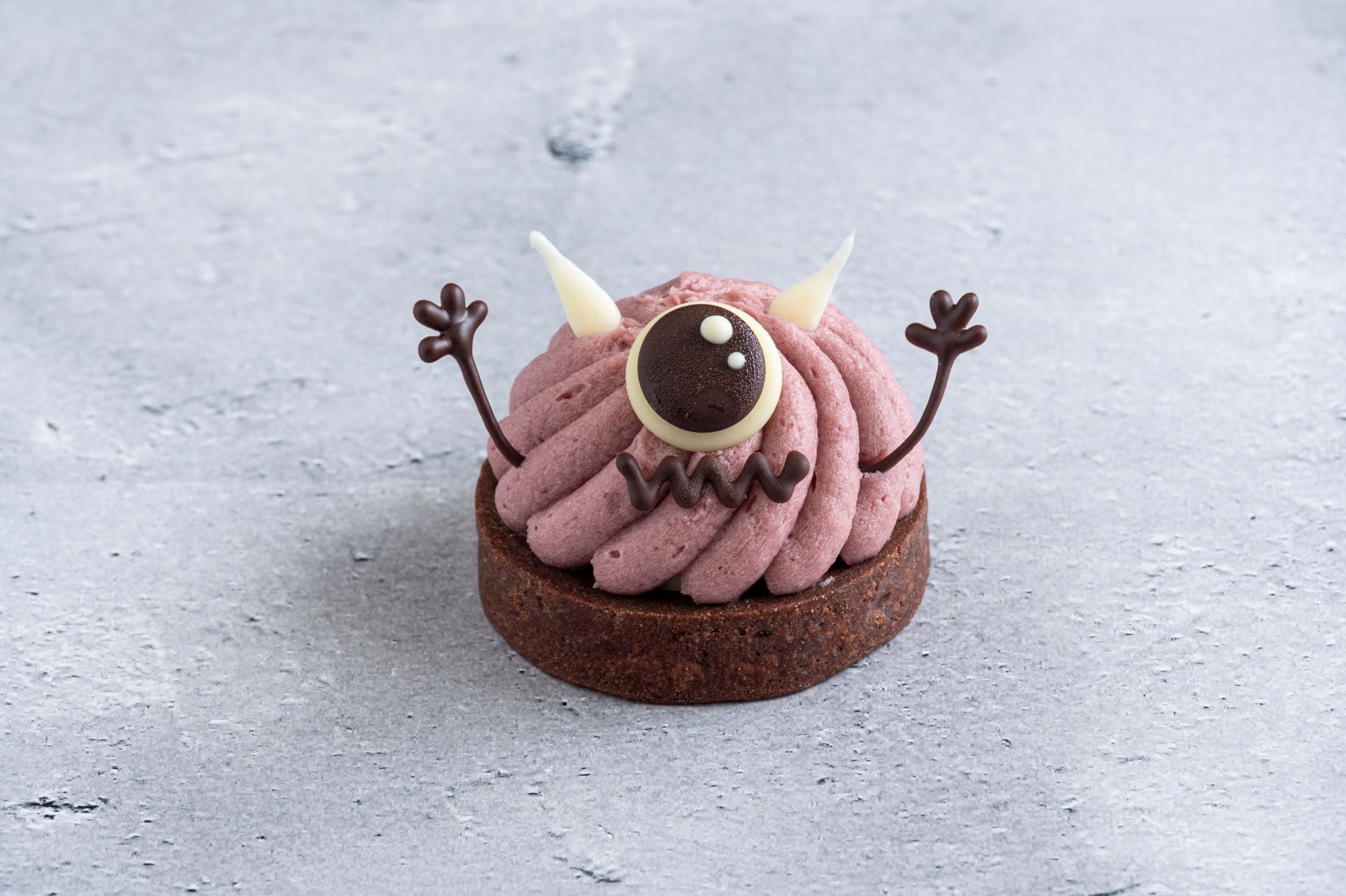 今年はキュートな一つ目おばけの「紫芋のモンブラン」や「ジョリ ファントム」、国産のかぼちゃペーストをたっぷり使った「かぼちゃプリン」の計3種をご用意しました。「紫芋のモンブラン」はあっさりとした甘みの紫芋クリームに濃厚なバニラムースなどを組み合わせ、飽きの来ない味わいに。「ジョリ ファントム」は、甘酸っぱいフランボワーズソースやレアチーズをメレンゲで包んだかわいらしいケーキです。国産かぼちゃのペーストをたっぷり使用した「かぼちゃのプリン」は、歯ごたえのあるクランブルチョコレートやくるみなどを添えて食感にアクセントを加えました。