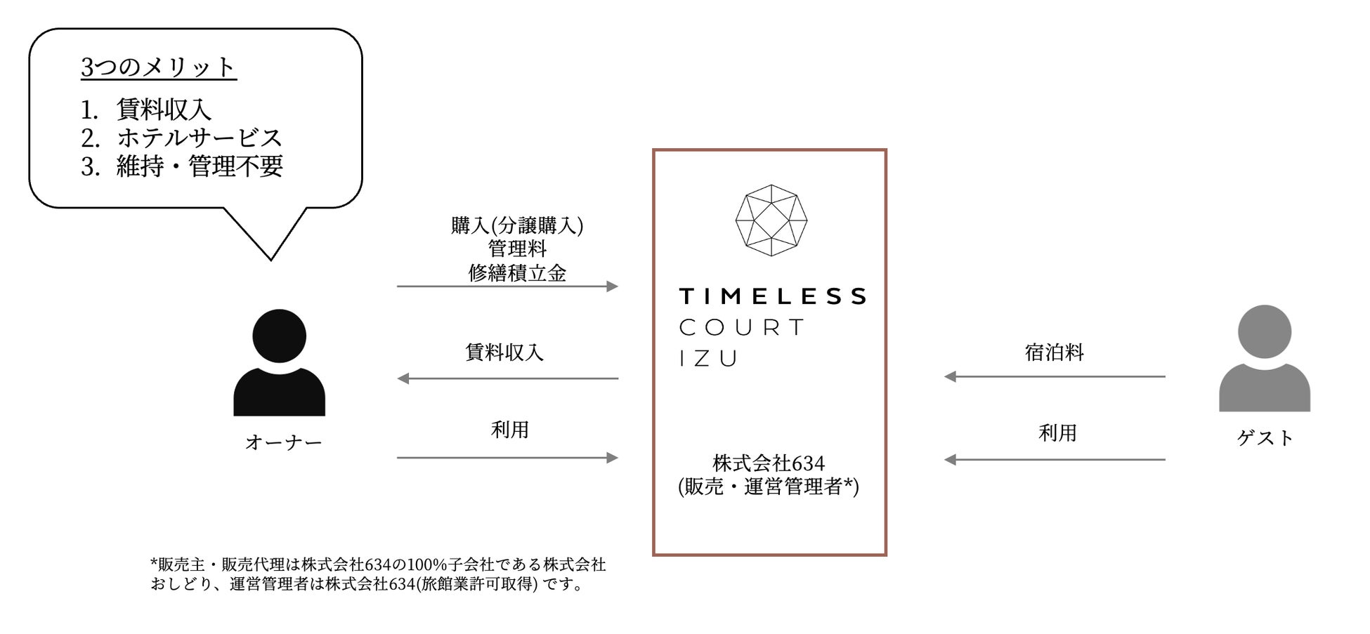 株式会社634はプライベート・ラグジュアリー・コンドミニアムの運営企業であり、都内において複数の宿泊施設を運営しております。TIMELESS COURT IZUに加え他にも国内外の複数のコンドミニアム開発を進めております。