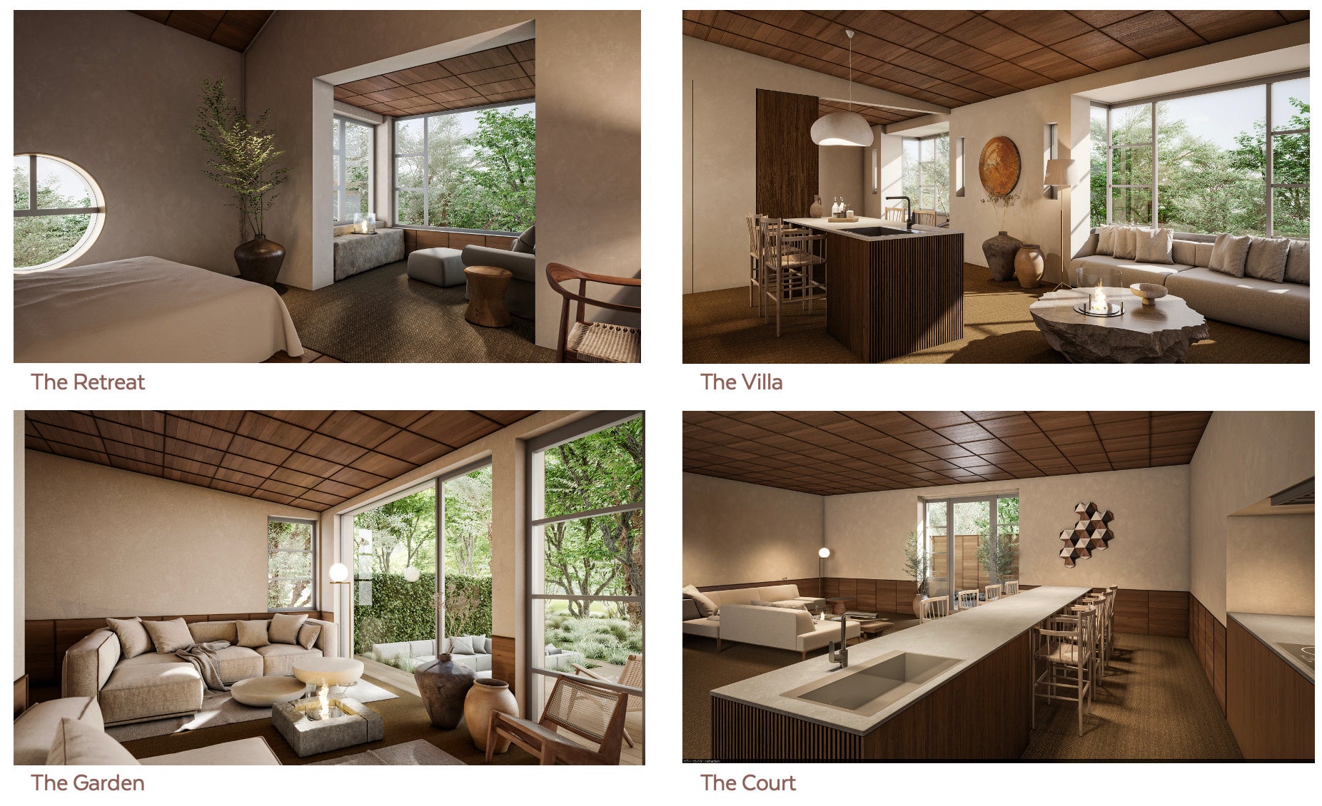 各室間取り:Studio, Junior Suite, 1LDK+Garden, 2LDK+Garden, Suite