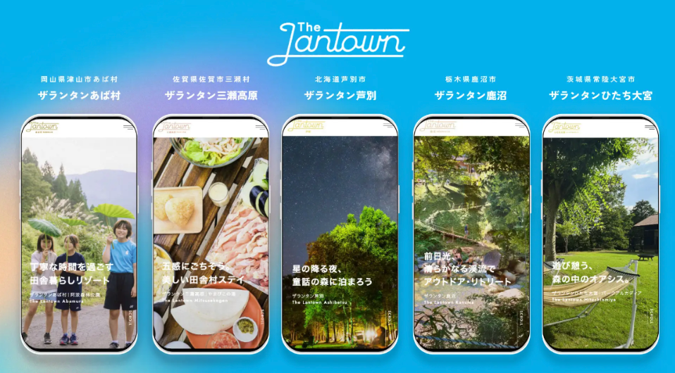 ザランタン(The Lantown)は、株式会社ダイブが全国に展開しているグランピングブランドです。あかりを指すランタンには、まち(TOWN)の魅力をつなぐ(LAN)ことで地方創生の火をともすという意味を込め、観光地化されていない地域を中心に開発しています。