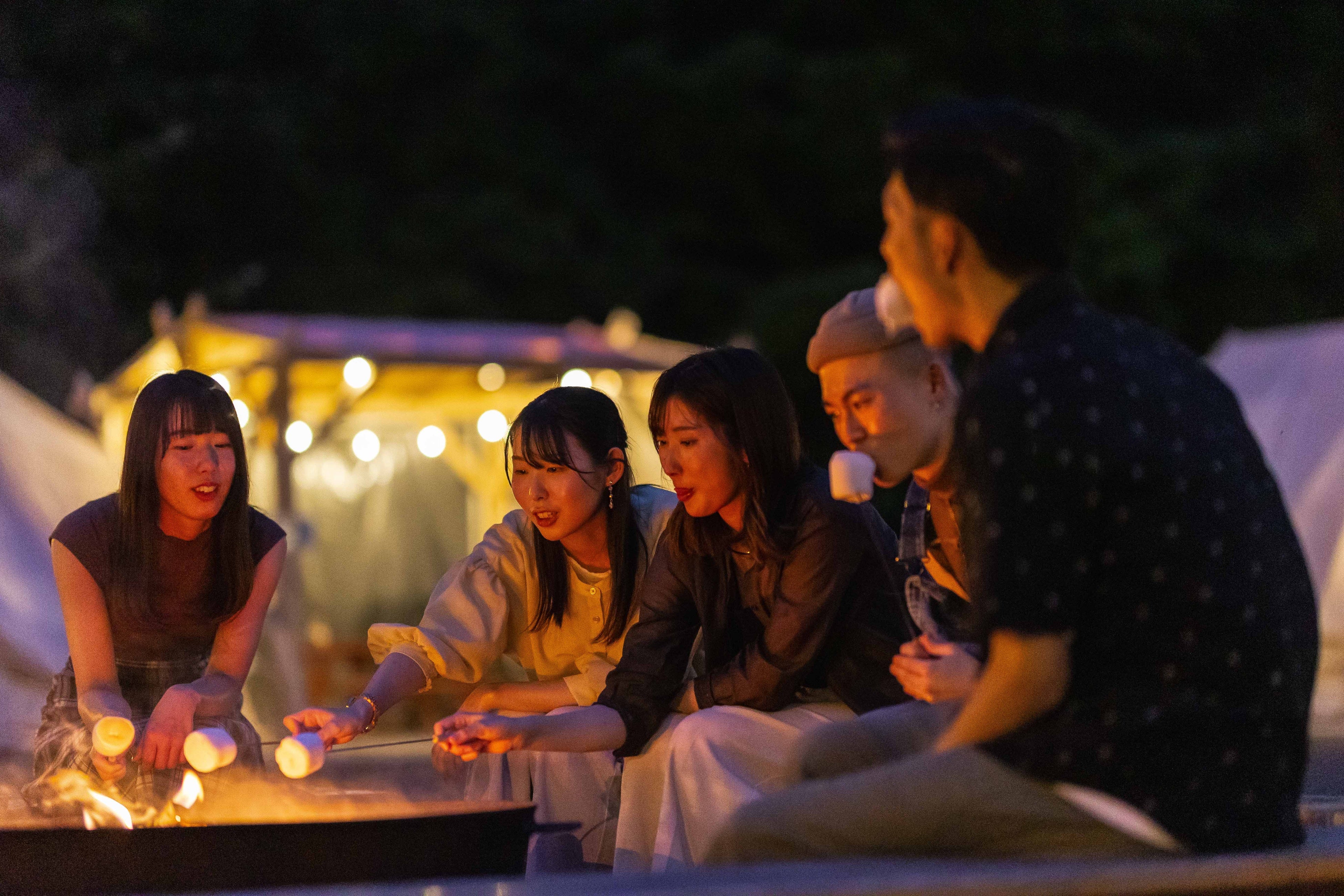 団体割を利用していただくと、お一人様あたり9月は−5,000円、10月は−3,000円の割引となります。加えて「一部テントエリアの貸切」や「プライベート焚き火」もご利用いただけます。8〜16名の団体様が対象のため、職場のチームメンバーやサークルの合宿などでのご利用がおすすめです。