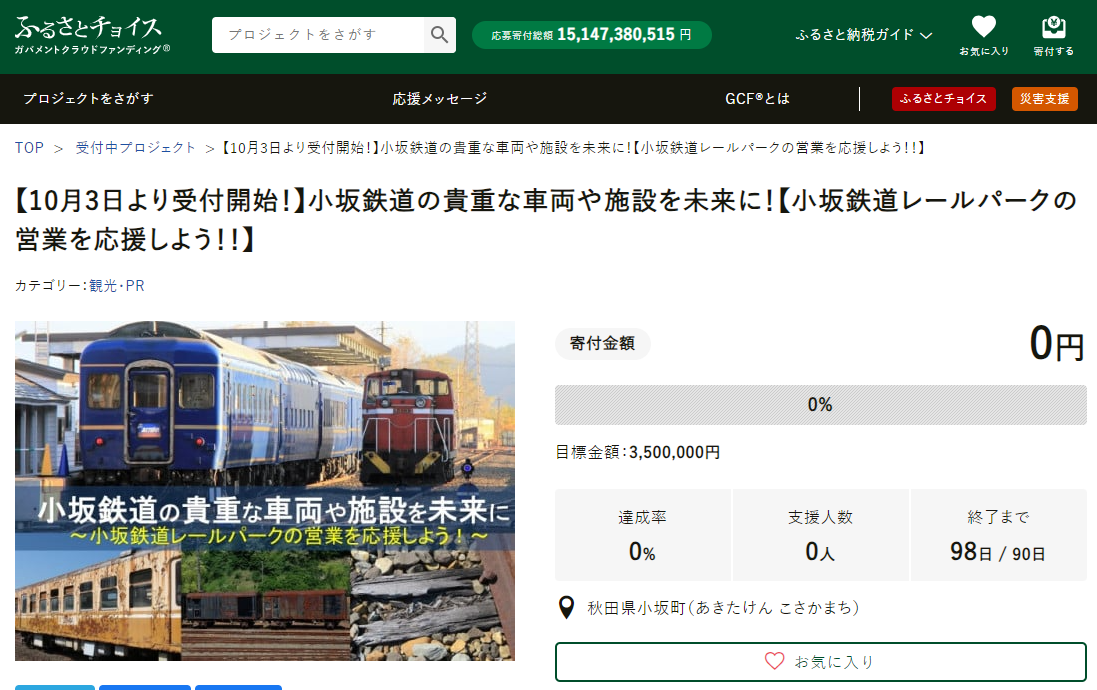 ◆プロジェクト名: 小坂鉄道の貴重な車両や施設を未来に!【小坂鉄道レールパークの営業を応援しよう!!】
