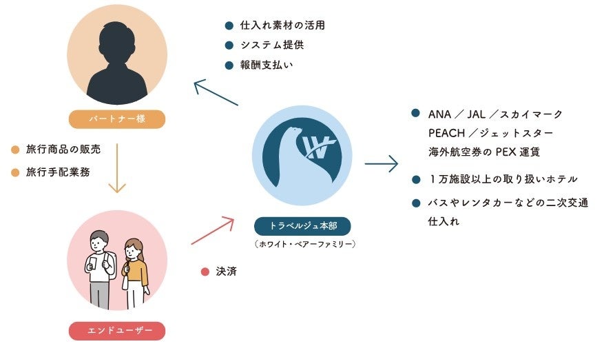 株式会社ホワイト・ベアーファミリー(本社:大阪市北区中津1-11-1、代表取締役 近藤康生 観光庁長官登録1種第1383号)は旅行業登録の一つである旅行業者代理店業における代理店との契約内容を出来る限り簡便化された、ホームエージェント型旅行業者代理業「トラベルジュ」事業を広く展開する運びとなりました。