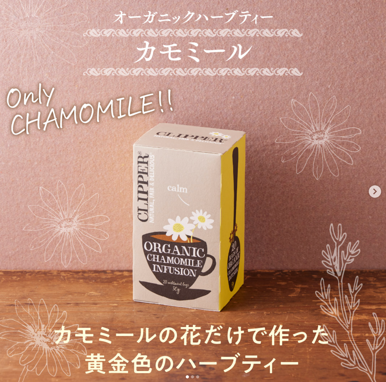 有機栽培されたカモミールの花のみで作られた明るい黄金色のカフェインフリーのハーブティーです。