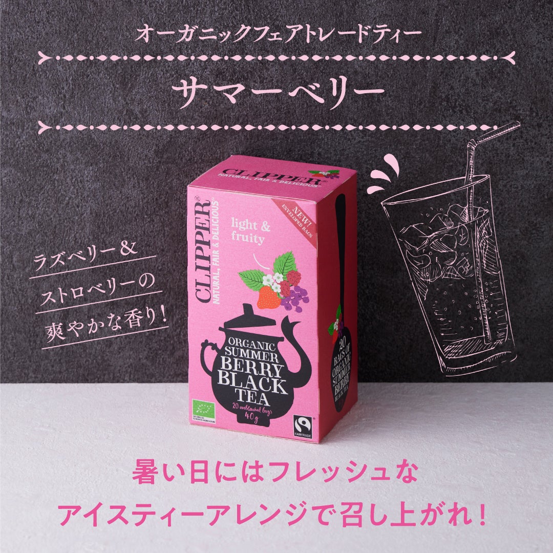 有機紅茶とブラックカラントに、ラズベリーとストロベリーの酸味をプラスした爽やかな香りが特徴です。