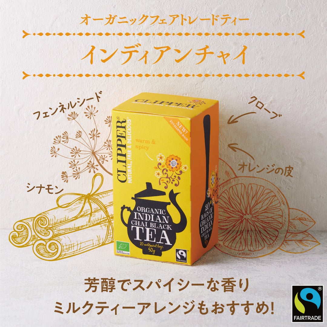 クリッパーは、1984年にイギリスのドーセットにある紅茶のマスターテイスターである、”マイク&ロレーヌ・ブリーム”の最高品質アッサムティーからスタートしました。 イギリス市場で初めてオーガニックの紅茶を取り入れ、1994年には国内初のフェアトレード認証を受け、最近では美食の国際大会「グレイトテイストアワード」を始め、数々の国際的な賞を受賞するなど、世界中で愛される紅茶ブランドです。