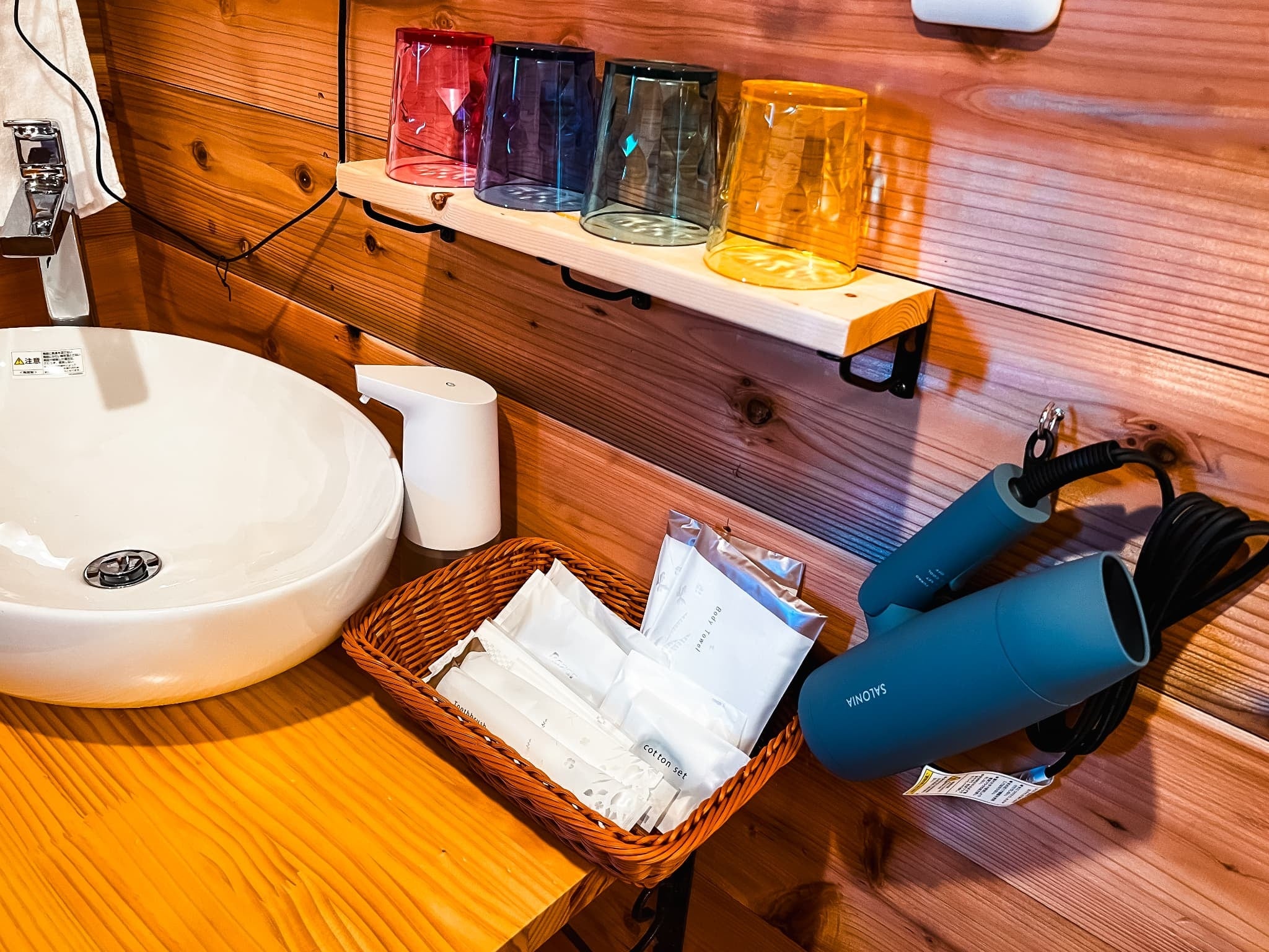 各お部屋ごとに専用のシャワールームも備え、アウトドアに不慣れな女性のお客様も明るく清潔なサニタリースペースをご利用いただけます。