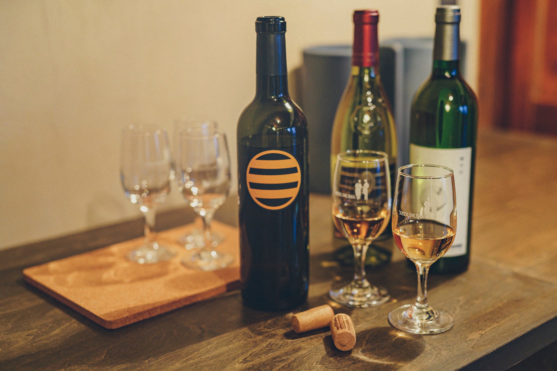 開栓したワインはボトルごとお渡し致します。 入手困難なオリジナルワインを中心に、山梨県ではこれは外せないと言った基本のワインから、珍しいワインなど、山梨ワインの基本を押さえつつ、ワインに詳しい方でも楽しめるワインをお選びいたします。