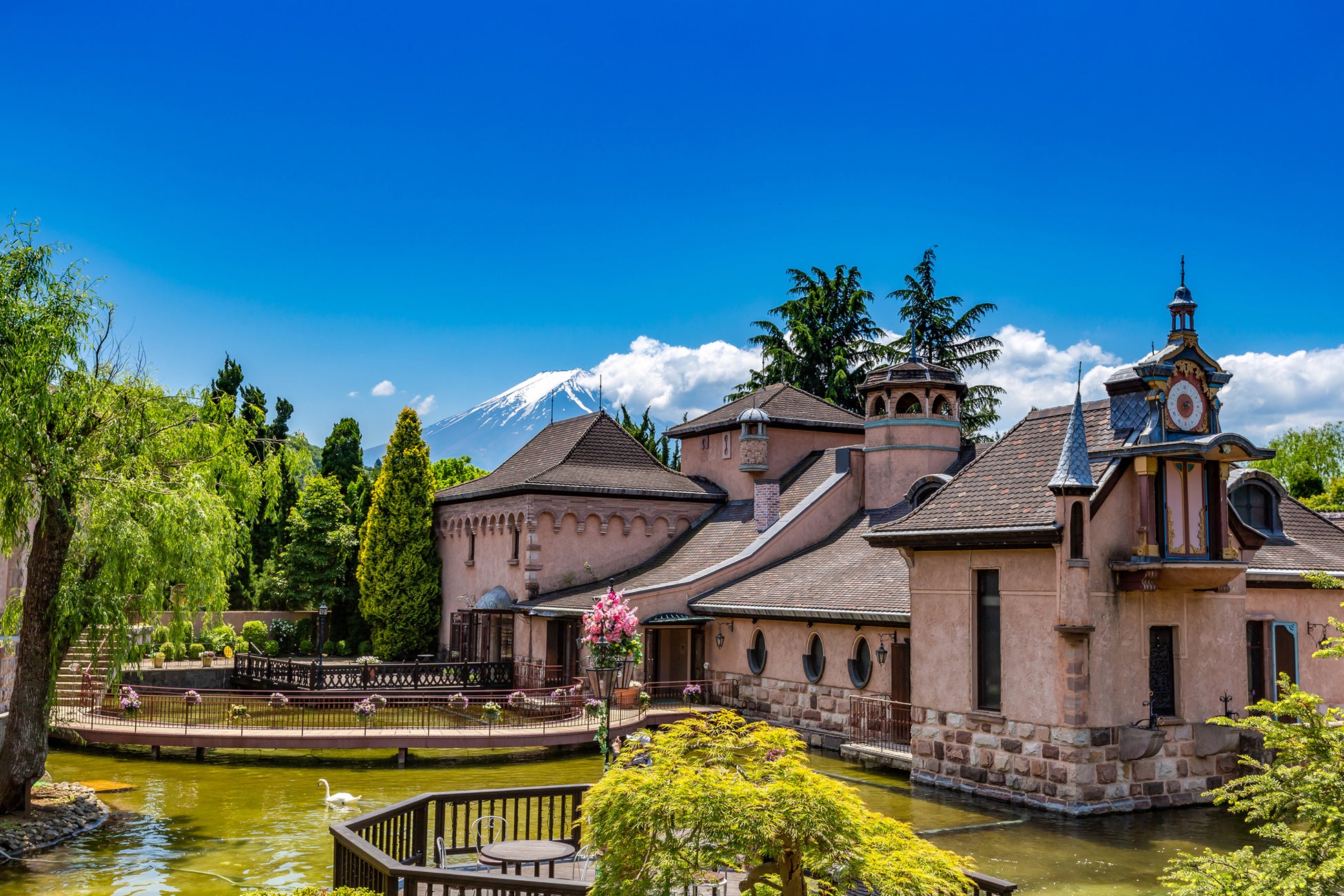 雄大な富士山と河口湖を背景に中世ヨーロッパを模した庭園美術館。音楽と森(芸術・自然)に特化した施設を目指すべく、様々なイベントを開催。100年前の音色と現代の音楽が奏でるオペラの共演や美しい砂絵とヴァイオリン・ピアノによるサンドアートコンサート、また富士山を眺めながらのランチタイムコンサートなど四季折々の景色と音楽の音色がやさしくつつんでくれる美術館。若手アーティストの支援も積極的に行っています。