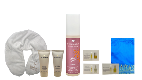 SUNDÃRIのオイルはアーユルヴェーダハーブをふんだんに使用しており、美容液のようなオイルがお肌に栄養と弾むようなハリ、うるおいをあたえてくれます。フェイス用のスターターキットをセットに、気軽にお家でアーユルヴェーダライフを始めることができます。あったかネックピローがセットなのも嬉しいポイント。心も身体も満たされるほっこりとした時間をお楽しみください。
