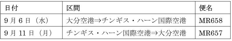 運航路線:大分空港(大分県国東市)⇔チンギス・ハーン国際空港(モンゴル・ウランバートル)