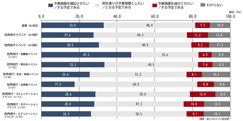 【開催頻度と予算傾向】頻度は同等または増加傾向。消費者向けには予算増加意向が高い