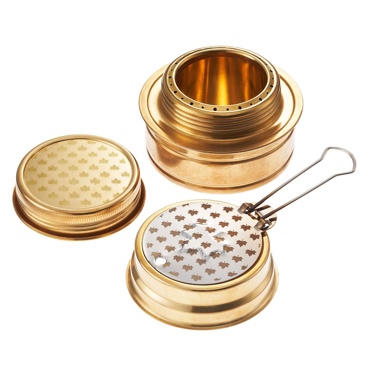 さらに、アルコールバーナーの上に調理器具を安定して置くことができるゴトクが付属します。ゴトクは、天板の切り込みに2枚のプレートを十字に差し込むだけで簡単に装着できます。天板がトレー型にデザインされているので小物が転がり落ちにくい構造になっています。スチール製でタフに使うことができ、コンパクトサイズでソロキャンプにもおすすめです。