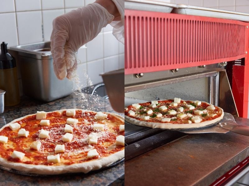 チーズやソースなどの具材はもとよりおいしさに直結する生地の食感にはとことんこだわりました。その場で生地を広げトッピング、400℃前後の高温の常設窯でダイナミックに焼き上げます。出来立てをお愉しみください。