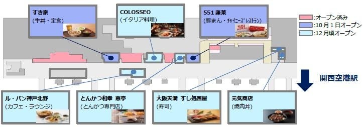関西エアポート株式会社は、現在リノベーション工事中の関西国際空港第1ターミナルビル・2階に出店する「551蓬莱」、「すき家」が2023年10月1日(日)にオープンすることをお知らせいたします。