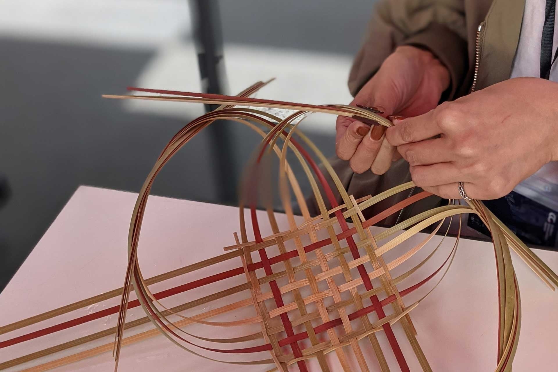 建仁寺垣・竹垣の専門店にて、古くから伝わる「四海波籠(しかいなみかご)」を制作します。お花を活けたり、果物やアクセサリー入れなどお楽しみください。