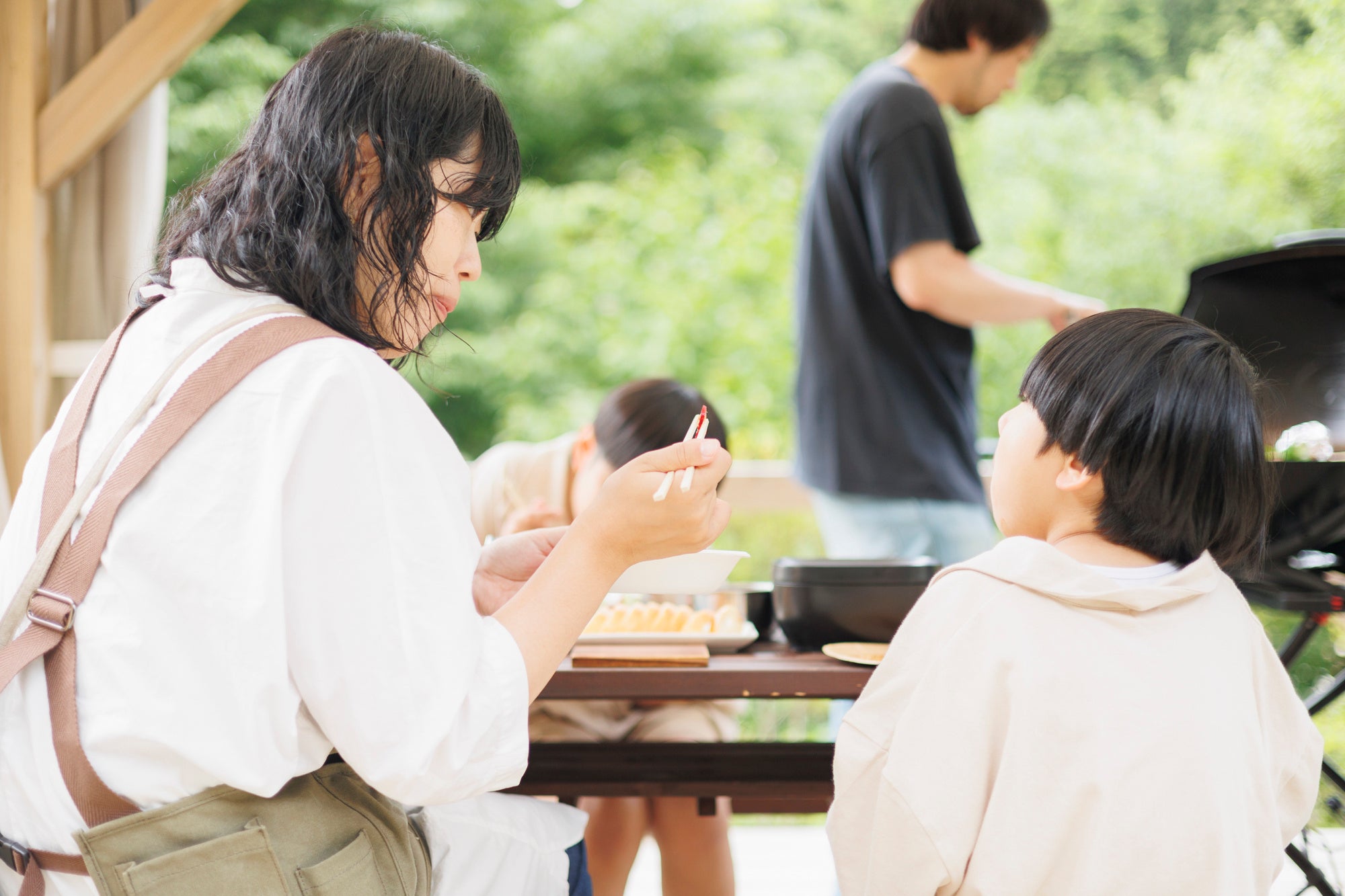 常陸大宮さん(産)最高級ブランド牛の『瑞穂牛』や、地元で採れたものを使った「鮎と奥久慈ねぎのアヒージョ」常陸大宮さん(産)『塩田みそ』の焼きおにぎりなど、地元食材をふんだんに使用したBBQのほか、「プライベート空間でお楽しみいただけるテントサウナ」や、子どもから大人まで楽しめる「アウトドアバドミントン」「オゴスティック」などの無料のアウトドアグッズまで。
