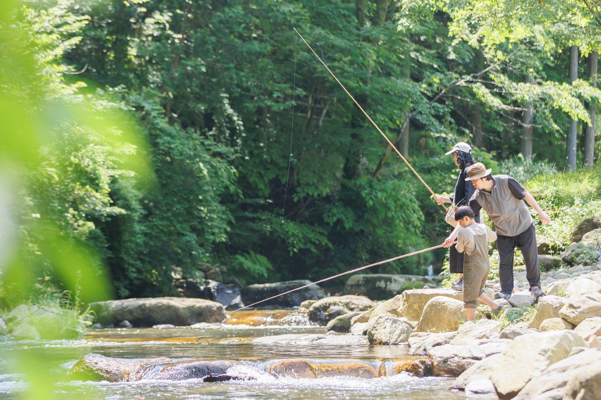 近くの渓流では「渓流釣り」「つかみ取り」などのアクティビティや、「収穫体験」など、都会ではなかなか体験できないアクティビティを提供しており、ファミリーのお客様から大変好評のお声をいただいております。
