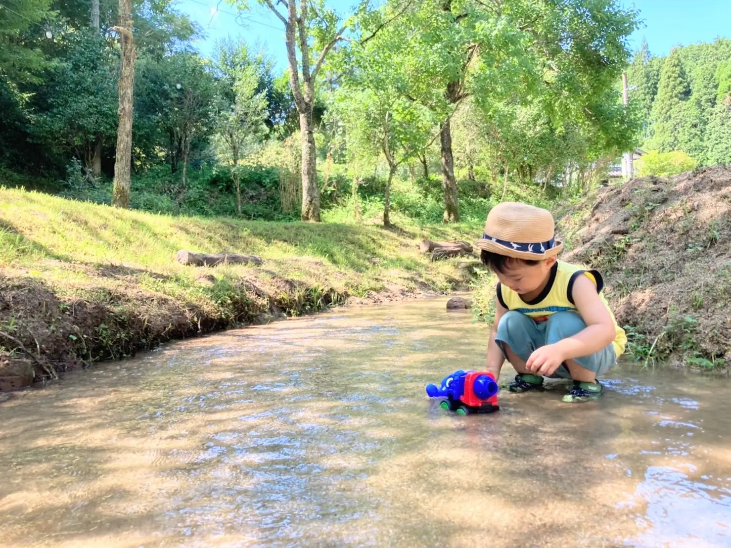 加えて、2023年より、テントサイト内の池の一部をお子様が水遊びできるスペース「じゃぶじゃぶ池」として整備。太陽の日差しが厳しい午後に、絶好の水遊びスペースとしてご活用ください。浅瀬に仕上げているため、小さなお子様でも安心してお楽しみいただけます。