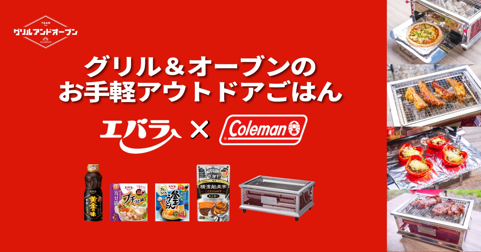 応募方法:コールマンの公式X(旧Twitter)アカウント(@Coleman_Japan)およびエバラ食品の公式X (旧Twitter) アカウント(@_ebarafoods)をフォローし、ハッシュタグ「#チームグリルアンドオーブン」をつけて、キャンペーンの投稿を引用リポスト