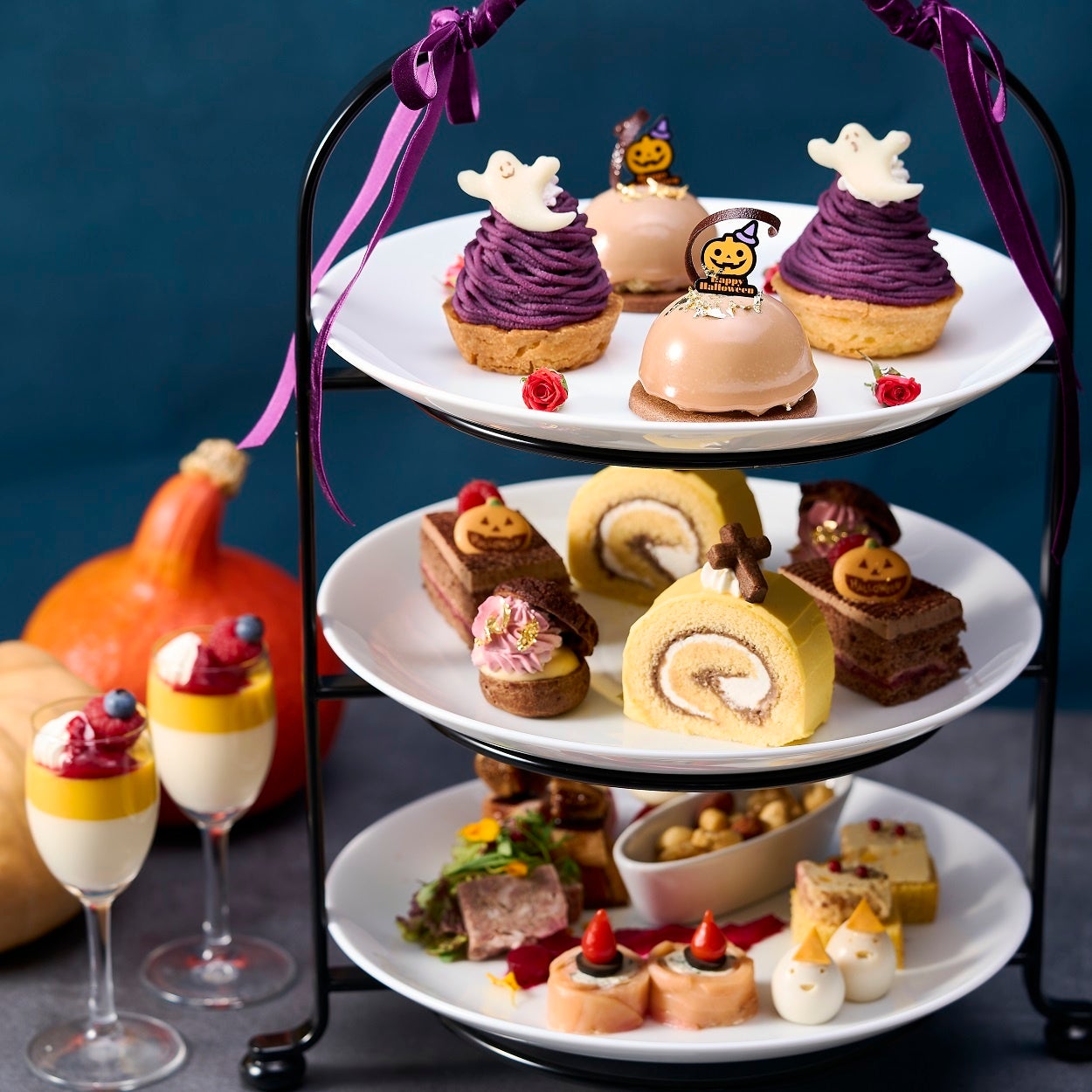 日中とは異なる表情を見せるシックで落ち着いた空間で、ハロウィンの魔法がかけられたスイーツとセイボリーをフリーフロードリンクとともにご堪能ください。