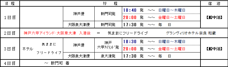 〇利用航路 泉大津便・神戸便選択可能(新門司発⇒泉大津または神戸六甲アイランド着)
