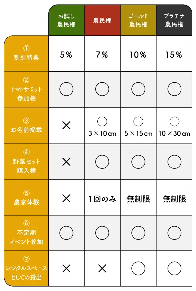 また、ご購入いただいたリターンにより、農民権のランクが分かれています。