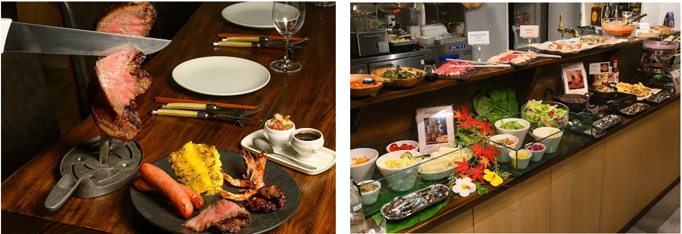 ●アイランド・シュラスコ 8,800円:【24種のシュラスコメニュー】+ビュッフェ台の全ての料理