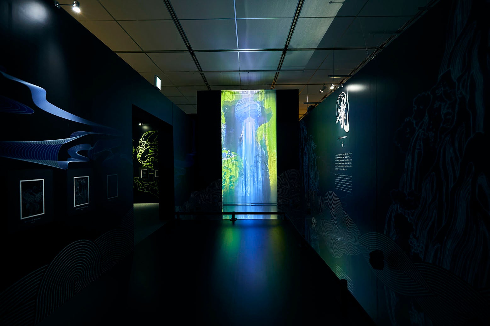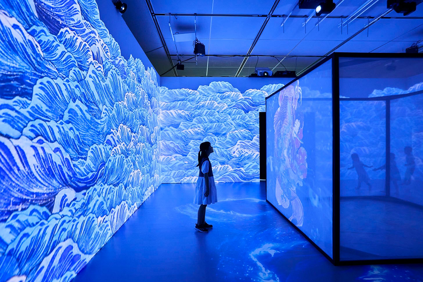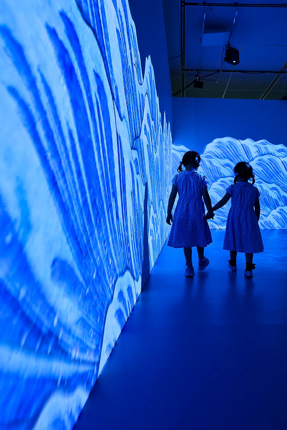 世界で「ジャパン・ブルー」と絶賛され、その美しさに多くの人が魅了される「藍色」。 浮世絵展第一幕では「藍」をテーマとした葛飾北斎や歌川広重をはじめとする浮世絵師が描いた、大海や荒波の作品をダイナミックに魅せる。浮世絵師たちの生涯のテーマであった「水の表現」。浮世絵の大迫力の表現、一瞬を捉えた画力、各作品の秀逸さを感じながら、映像技術による没入体験と幻想的な青の空間に浸る唯一無二の浮世絵空間をお楽しみください。
