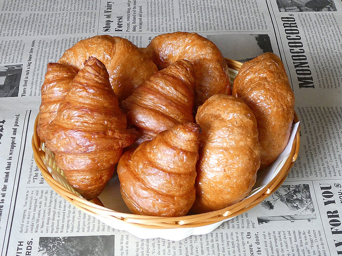 クラシックなフレンチクロワッサンとドイツタイプのクロワッサン(ギッフェリ)4ヶづつのセットです。お受け取りの約30分〜1時間前に焼き上げます。