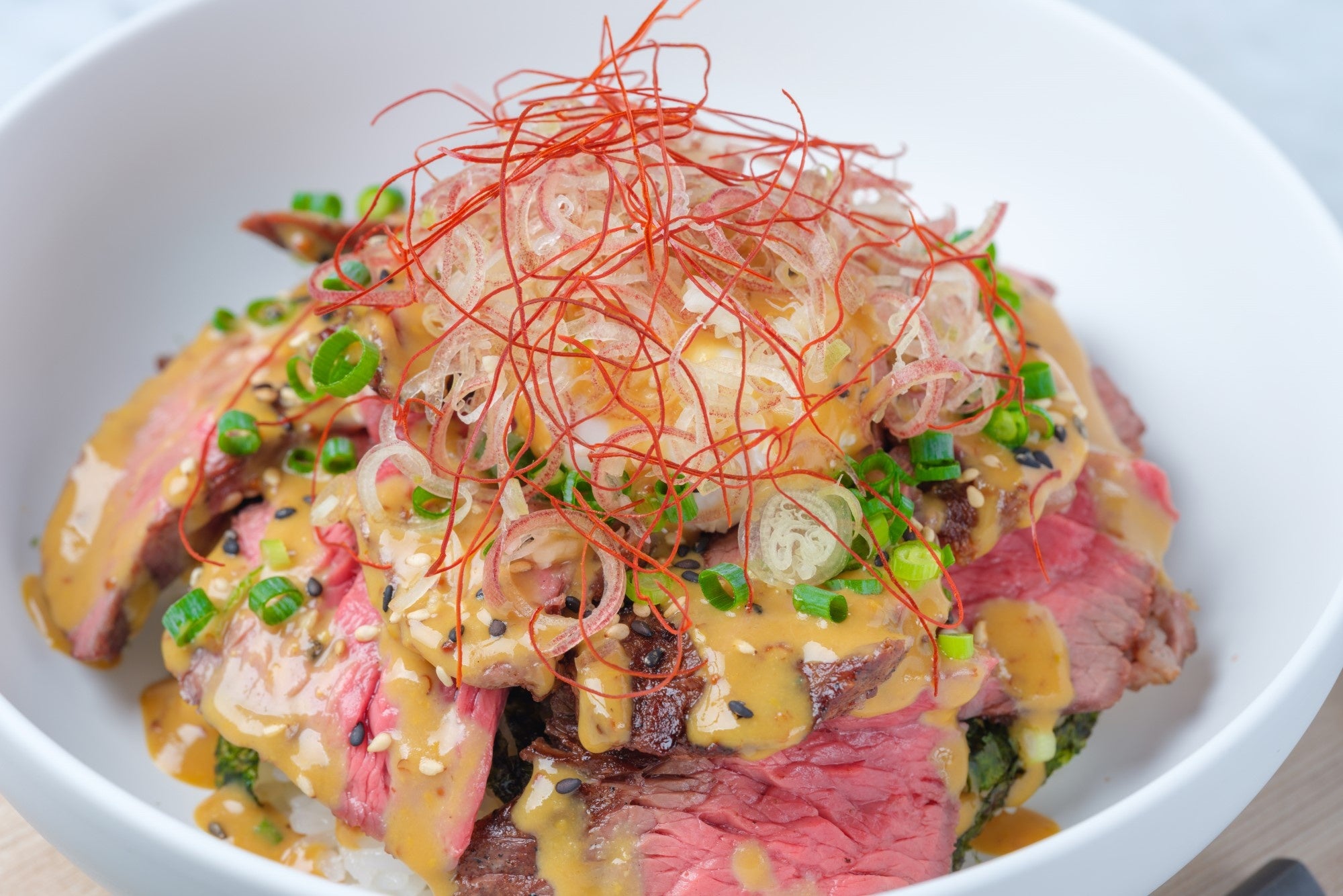 10月の平日ランチタイムには数量限定でグリルビーフ丼が登場します。生産プロセス全体の温室効果ガス排出量がゼロ、または中立になるような環境で飼育・出荷されたオーストラリア産のカーボンニュートラル牛を使い、やわらかく仕上げたローストビーフをたっぷりと、炊き立てのご飯にのせ、特製ソースをかけました。本日の一品、味噌汁もセットにし、忙しい合間にも満喫できる手軽さとお得感が魅力です。地球環境保護やサステナブルを大切にしている、ハイアット セントリック 金沢らしさを映したメニューで、午後へのエネルギーチャージはいかがでしょう。