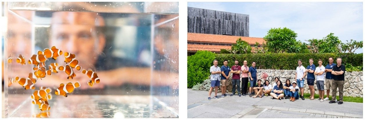 2021年6月にはOISTの臨海研究施設「OIST マリン・サイエンス・ステーション」において、海洋気候変動ユニットの協力により施設内の水槽でクマノミの孵化・飼育が始まりました。その後、育ったクマノミの稚魚を瀬良垣島周辺のクマノミ育成区域に放流し、海洋への復元に向けて経過観察を行っています。