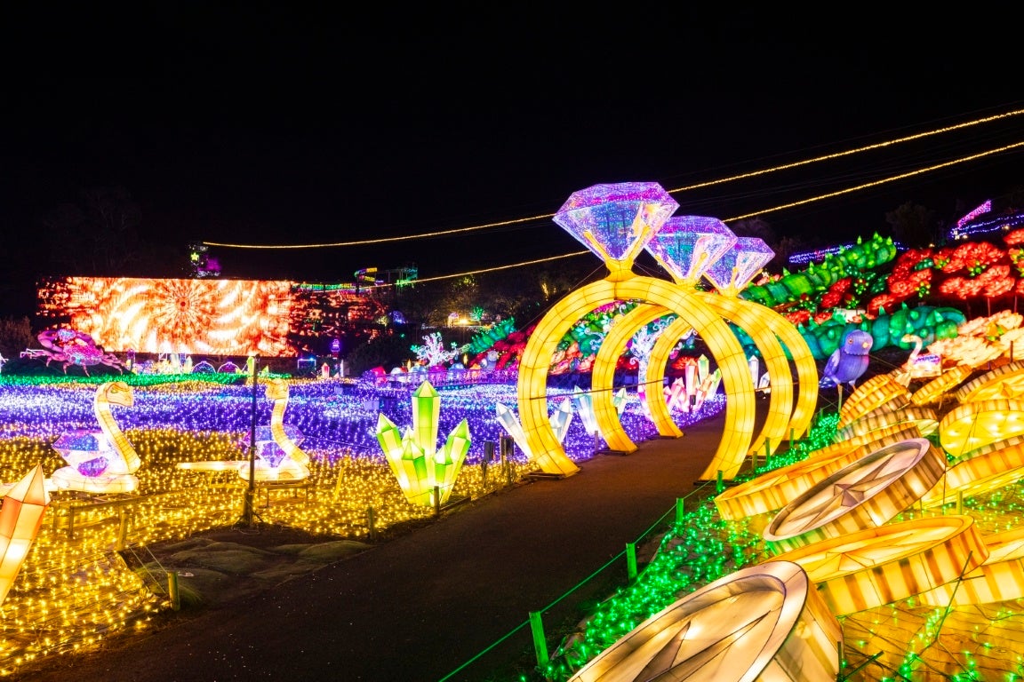 今シーズンは、「光のオーケストラ」、「ラグーンエリア」、「森の散歩道」が新たに誕生。昨シーズンに引き続き、指輪のトンネル、蝶々、ダイヤモンド、金貨、銀貨、勇者の剣などなど、さまざまなランタンやイルミネーションで彩られます。