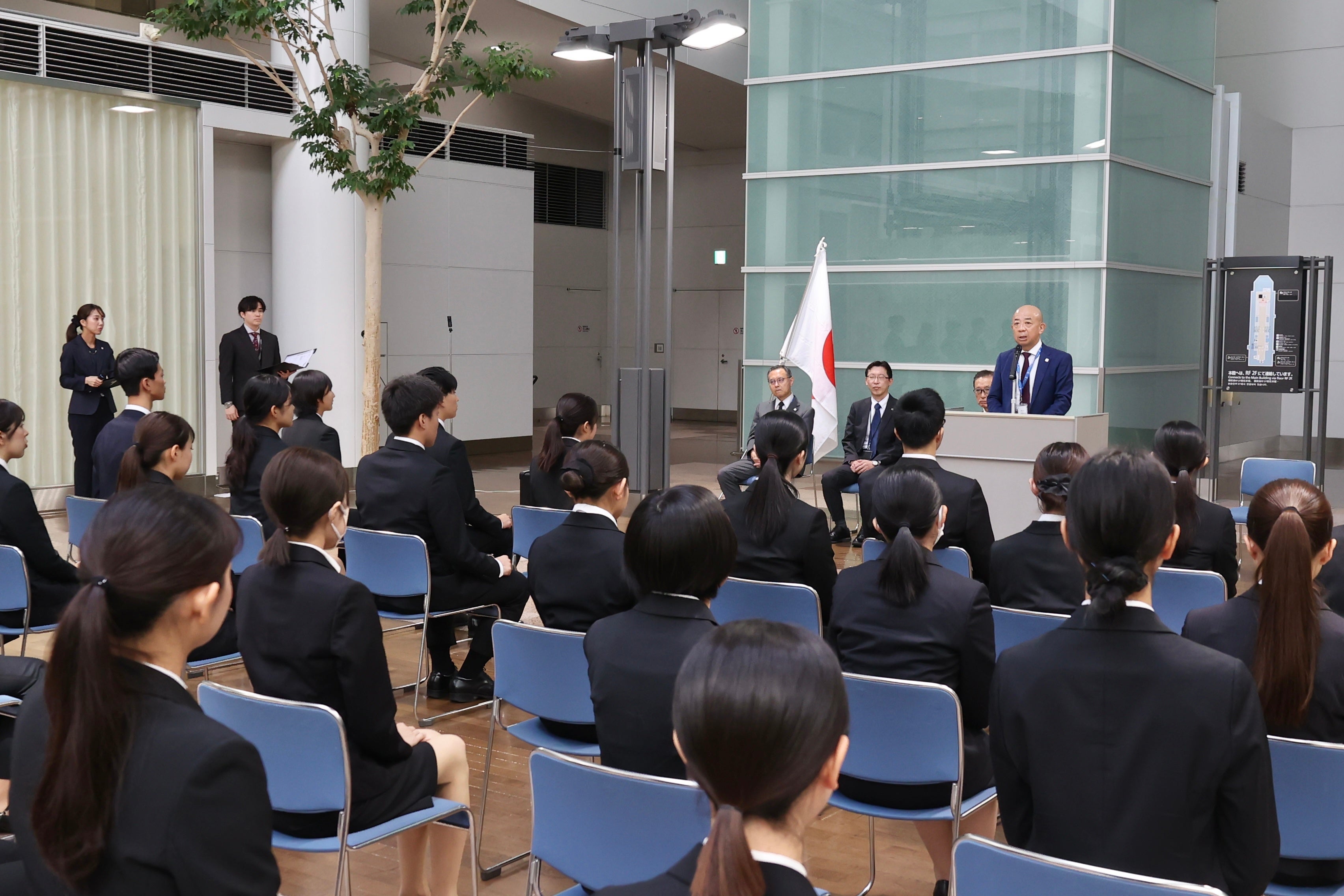 式では、中部国際空港株式会社 犬塚力社長が「今年策定したセントレアグループのパーパス(企業の存在意義)で『いい空港』を追求し続けると宣言した。お客様のニーズや外部環境の変化に応じて『いい空港』に求められる要素も常に変化していく。セントレアはまだ未完成であり、皆さんが一人ひとりが思う『もっといい空港』を目指して力を合わせていこう。」と語り、セントレアグループの新たな仲間を歓迎しました。