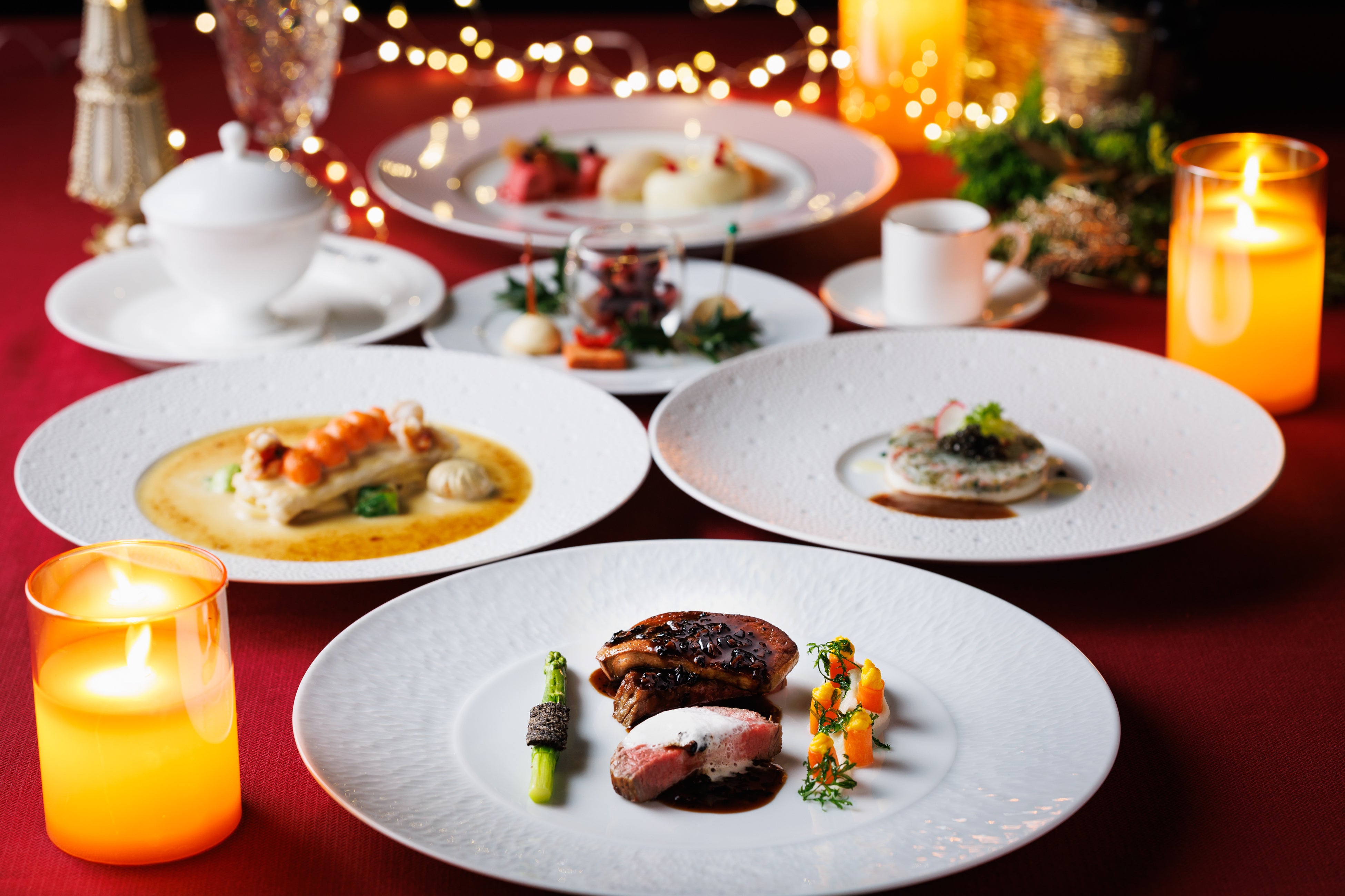 楽しいひと時のプロローグとして、シャンパーニュと共に味わうアミューズはクリスマスらしいカラーを散りばめました。