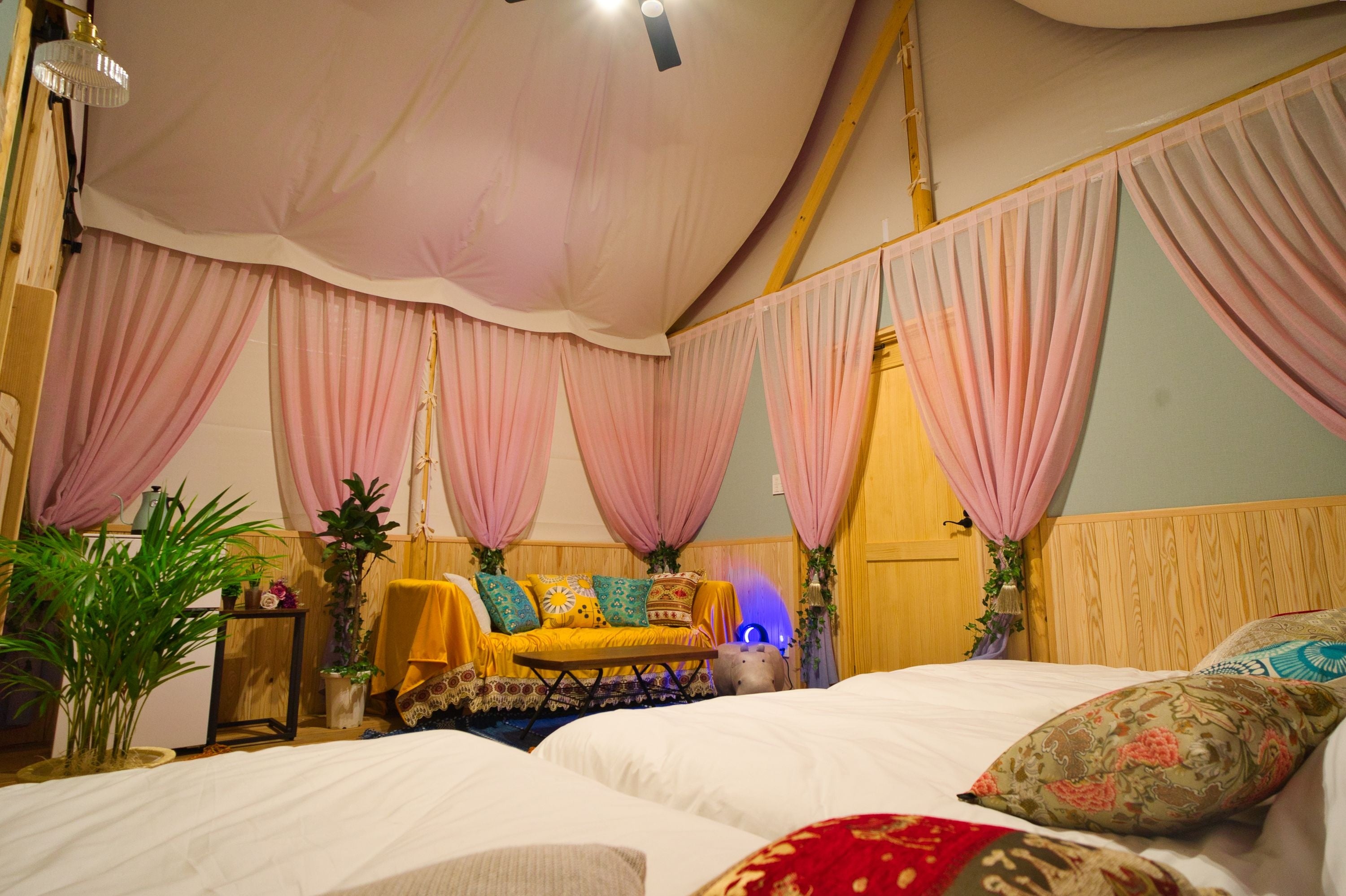 大迫力の巨大テントは解放感にあふれる異国風のお部屋になっています。