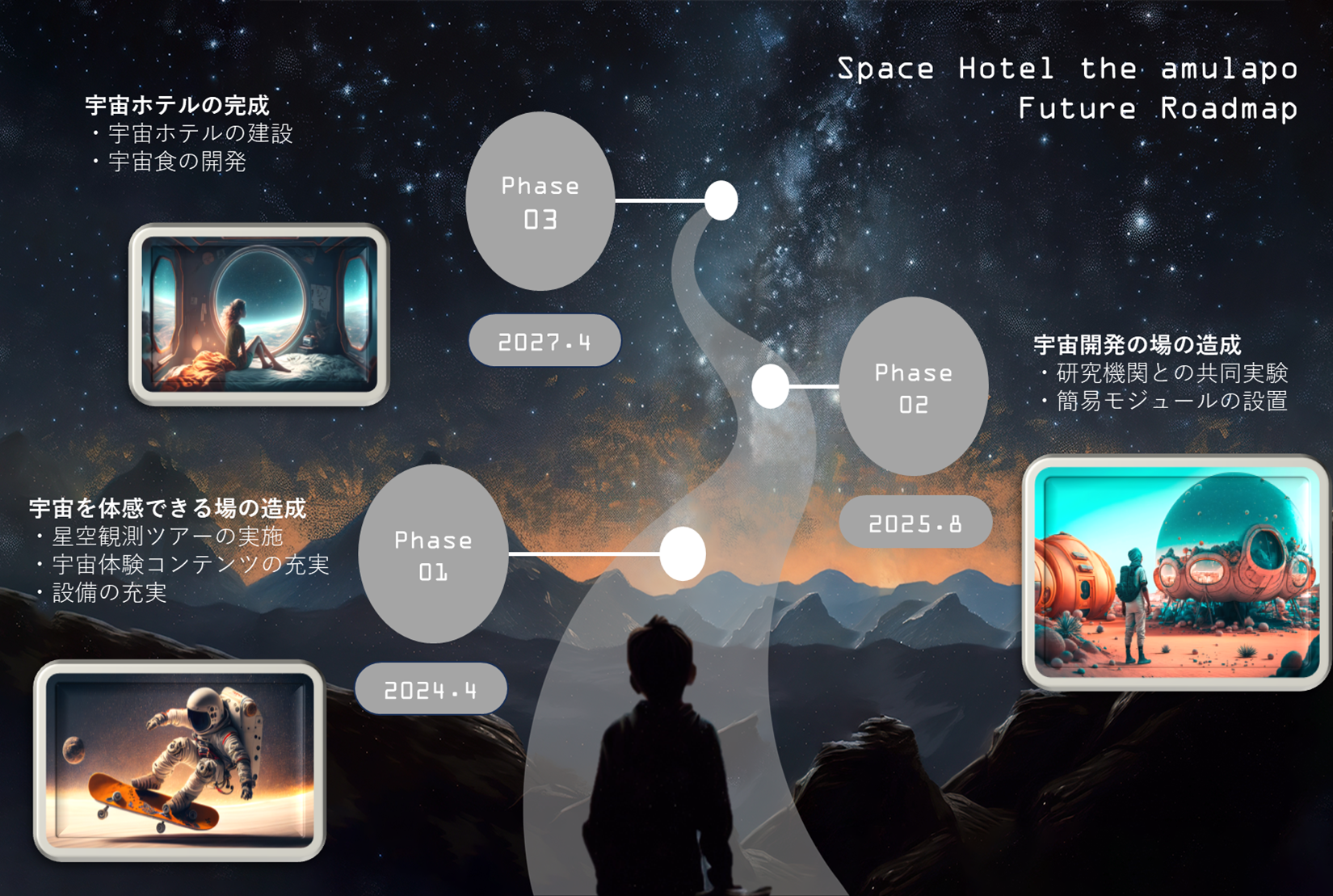 宇宙の体験をつくる研究者集団の株式会社amulapo(アミュラポ、本社:東京都新宿区、代表取締役:田中克明)と株式会社八ヶ岳高原テラス(長野県原村、代表取締役:川上幸男)は、2027年の地上で体験できる宇宙ホテル開業に向けたロードマップを公開し、その中のPhase1の実現のため2023年9月24日~11月31日の期間でクラウドファンディングを開始いたしました。