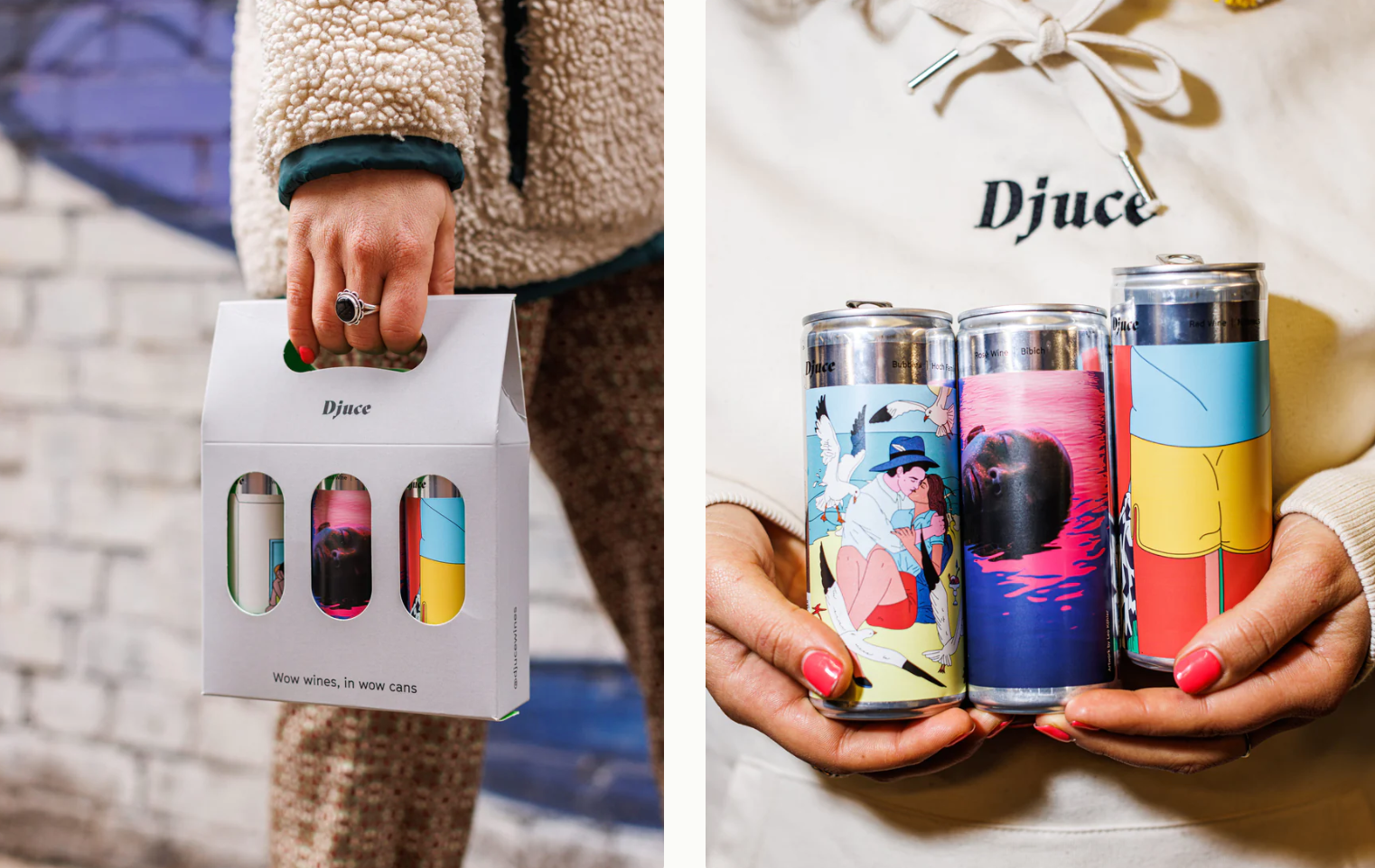 2022年にスウェーデン・ストックホルムで誕⽣したDjuce(ディージュース)は、素晴らしいワインを提供しながら地球環境を守ることを⽬標としている新しいスタイルのワインブランドです。ミシュラン星付きレストランのソムリエと協⼒し、ヨーロッパ中の素晴らしい⽣産者のワインを厳選し、⽬を引く現代アートでデザインされたアルミ⽸に⼊れ提供します。