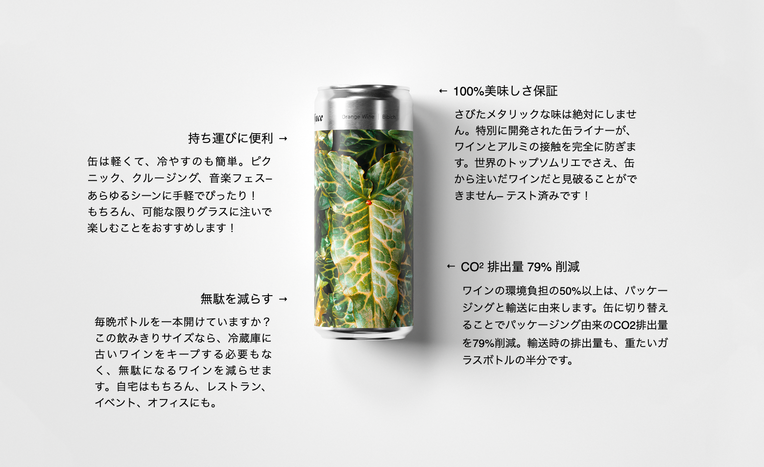 肝⼼の味ですが、Djuceのワインはガラスボトルに⼊ったものと⼀切違いはありません。Djuceの⽸はアルコール飲料のために開発されたライナーが施されており、ワインとアルミの接触を防いでいます。アルミ⽸は中⾝の酸化を防ぎ、光も完全に遮断するという観点から、ワインの保存には最適な容器であると⾔えます。 実際にテイスティングの実験を⾏ったところ、世界のトップソムリエでさえDjuceのワインが⽸から注いだものだと⾒破ることはできませんでした。⽸に⼊れることがワインの味に影響を与えないことは⽴証済みです。