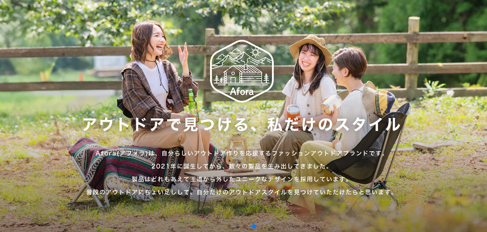Afora(アフォラ)は2021年に誕生した、ファッションアウトドアブランドです。私たちはユーザー一人ひとりの自分らしいアウトドア表現を応援するブランドとして、数々のユニークなキャンプギアをリリースしてきました。
