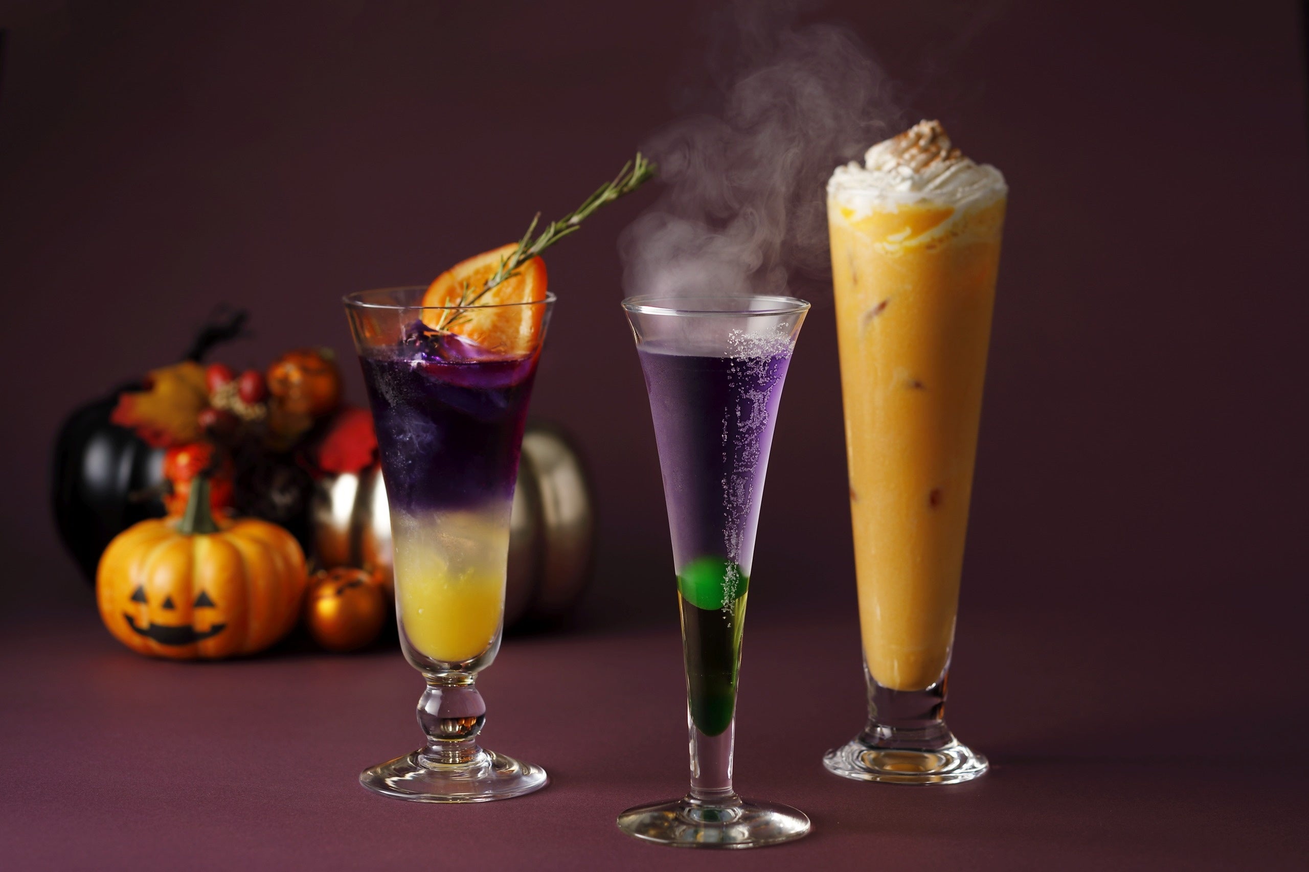 ホテルのバーテンダーがハロウィーンをイメージして作った期間限定モクテルが3種登場。動画で撮影していただいても映えるよう、ちょっとした細工が施された一杯も。3店舗それぞれのモクテルを飲み比べしてみては。